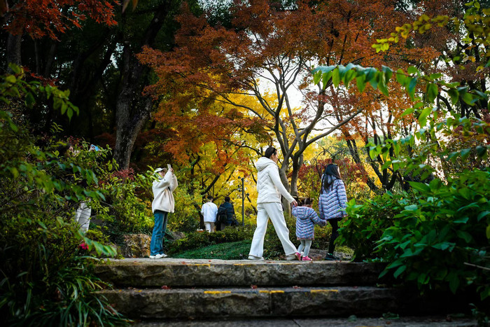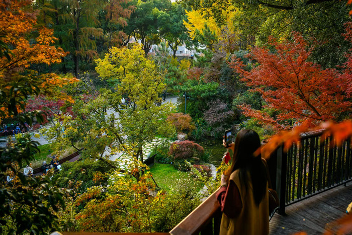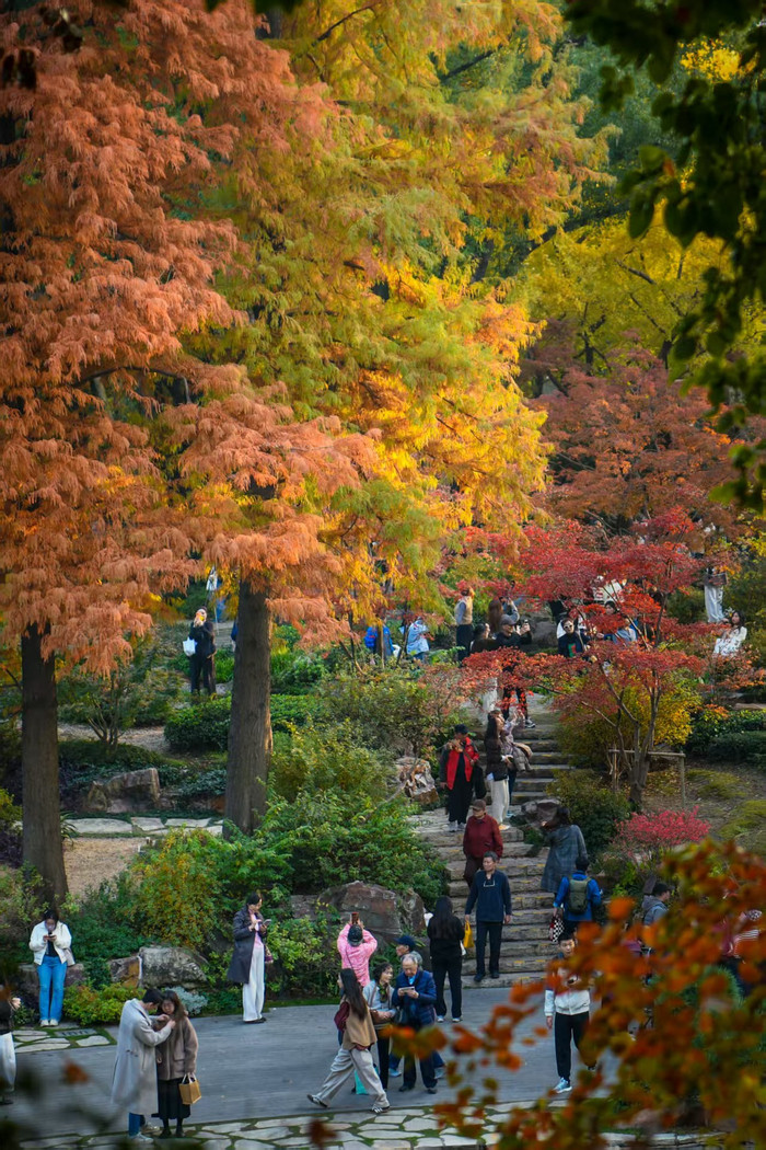 近期,辅德里公园内层层叠叠的红枫、银杏、落羽杉……高低错落,五彩斑斓。步入“秋日之门”,仿佛打翻了调色盘,成为市民赏秋好去处。