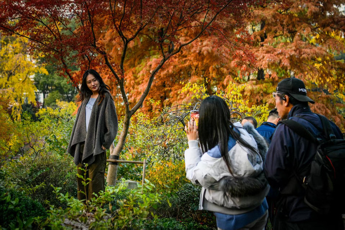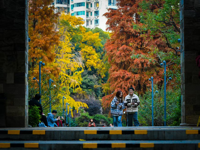 深秋时节,藏在市中心的小公园成为魔都秋色的“天花板”。