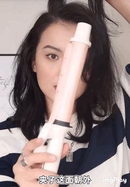 刘海儿的部分把卷发棒夹子的部分朝外,卷棒朝里,夹住刘海儿向后卷,这样就能卷出弧度炒鸡自然的八字刘海,能在视觉上很好的修饰脸型
