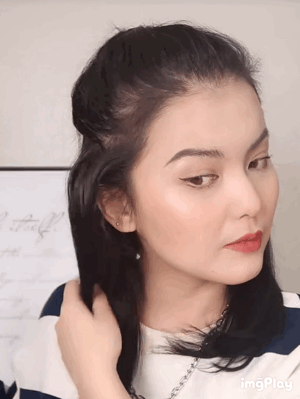 其实黑长直,不染不烫的头发弄出来就已经很好看了,想要增加甜美感,可以把下半部分的头发用卷发棒随便卷一下,你就可以原地出道了,真的