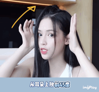 最后一步就是要增高我们颅顶,分出一小撮头发,然后往反方向用力,停留个大概5秒钟,这样头顶就会有一个非常自然的弧度,增高又显发量